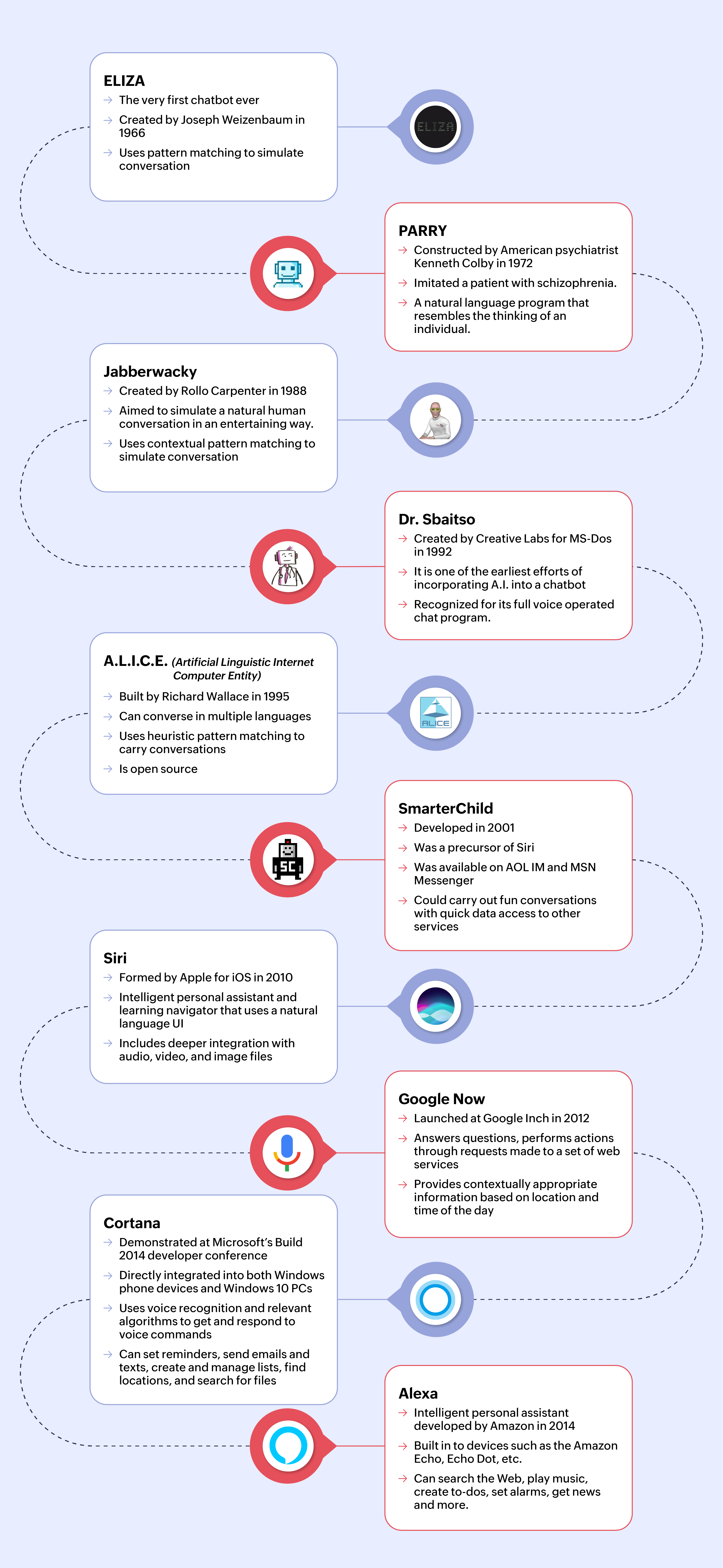 After ELIZA came multiple other iterations that helped us understand all the ways chatbots could be used and work to create more intuitive and comprehensive chatbot programs. Here are some of the most important breakthroughs that have been made in chatbot programming since ELIZA in 1966.