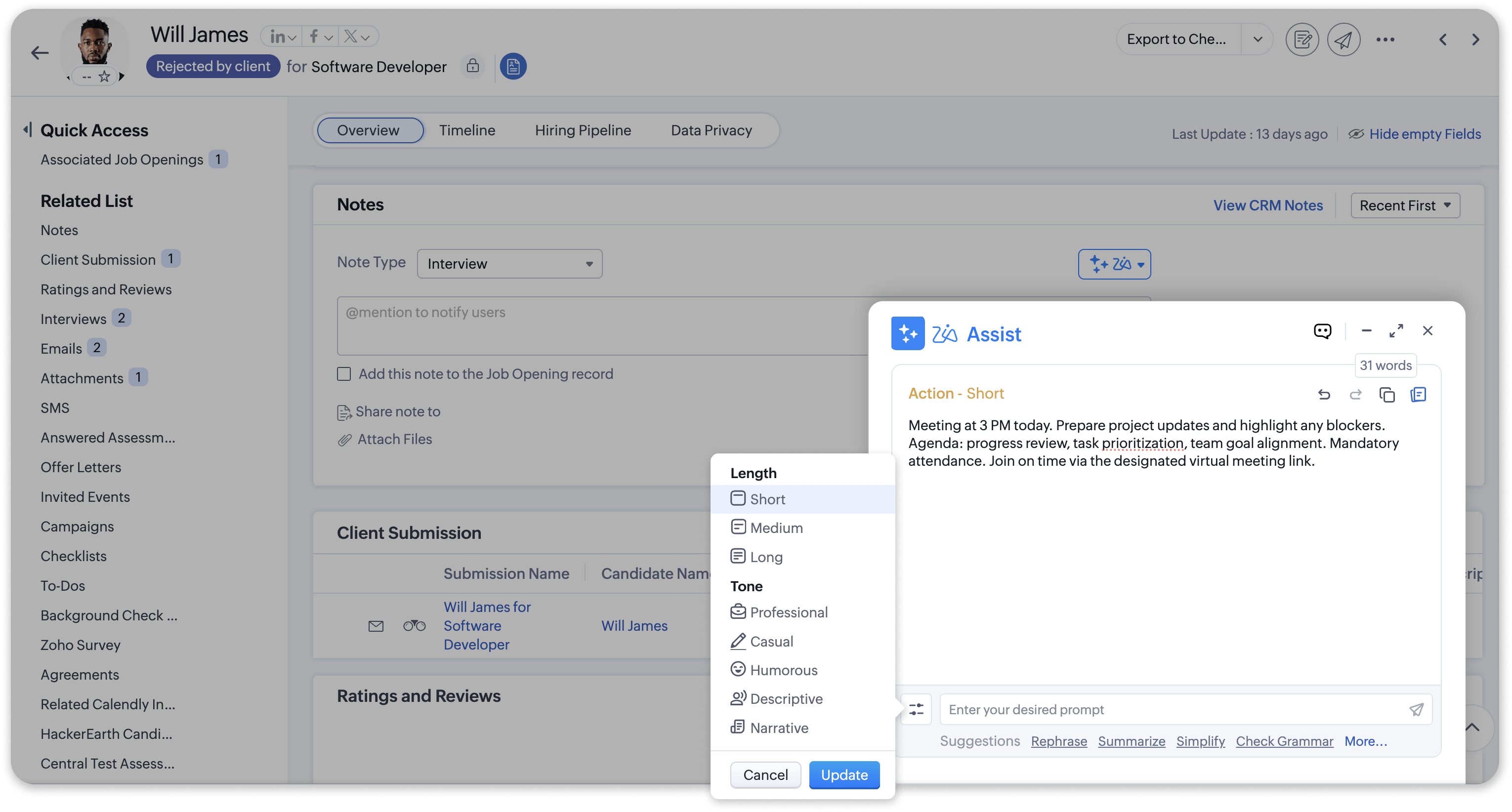 Zoho Recruit has an exciting lineup of additional updates coming soon. It’s interview clarity, reset for speed.