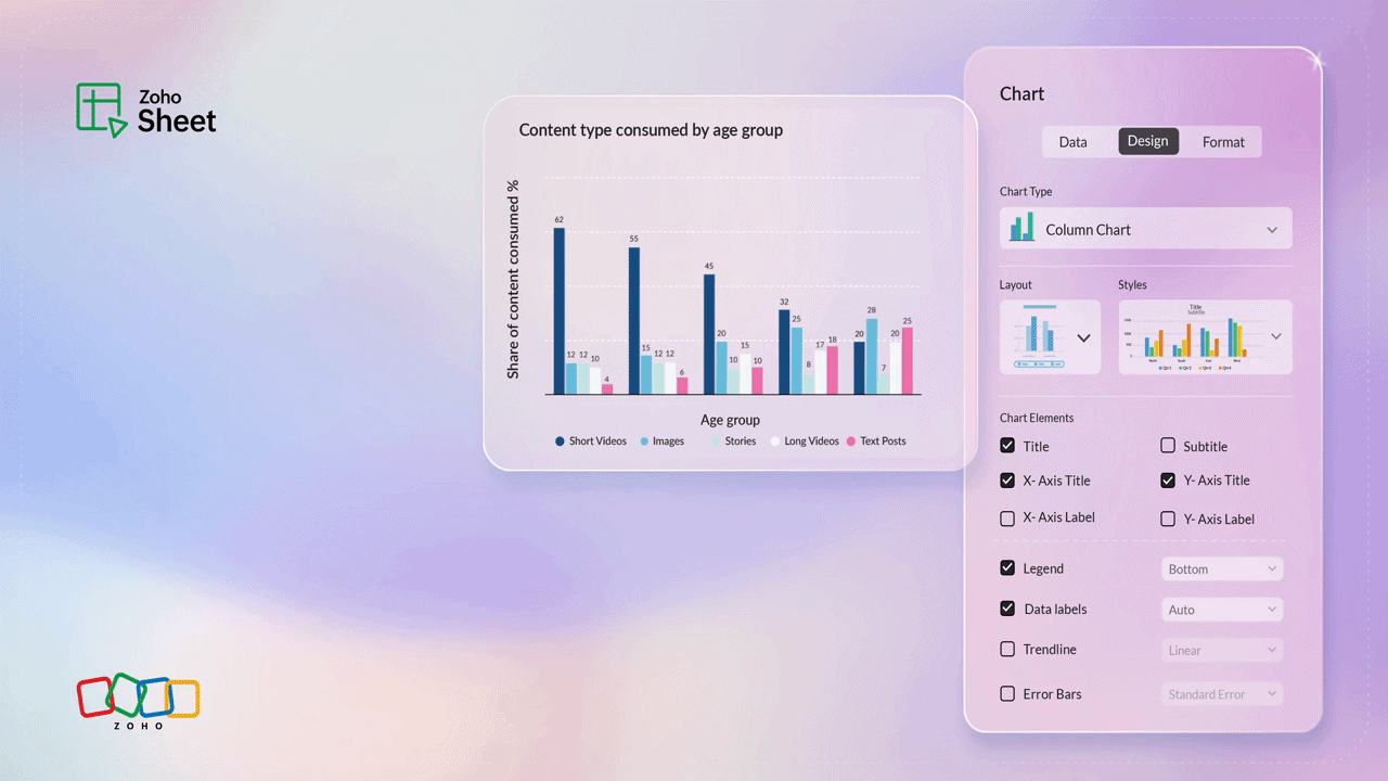 Great charts don't just visualize numbers—they communicate insights, highlight trends, and break down complex data into digestible snapshots. At Zoho Sheet, we are constantly enhancing the charting experience to help you create meaningful charts.