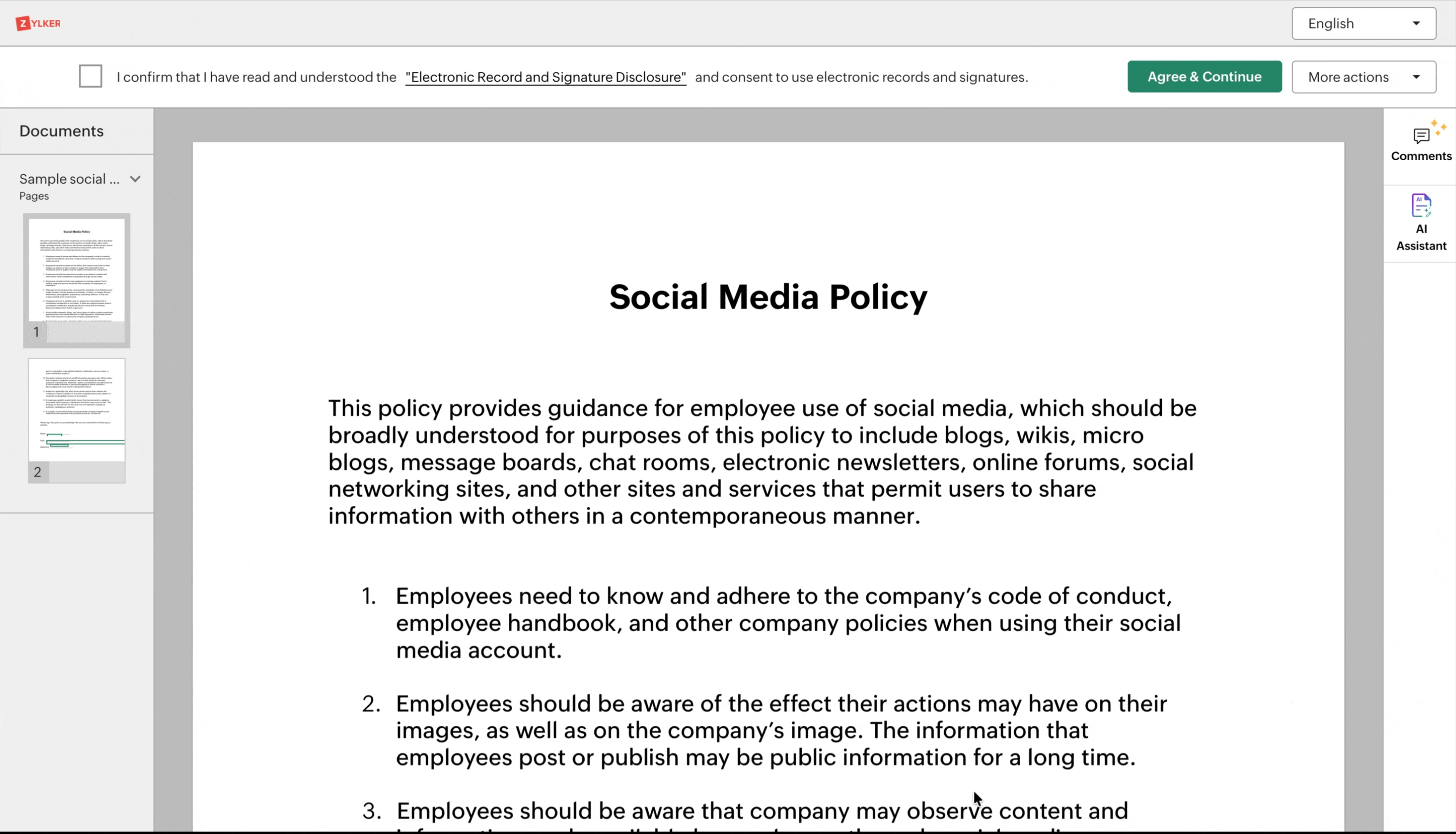 All you have to do is drop a comment in the document, "please add clause XYZ", and the sender gets notified instantly. They can review, respond, and update the document as needed. It's like having a smart second pair of eyes whispering "Hey, don't forget this!” while you focus on getting things signed.