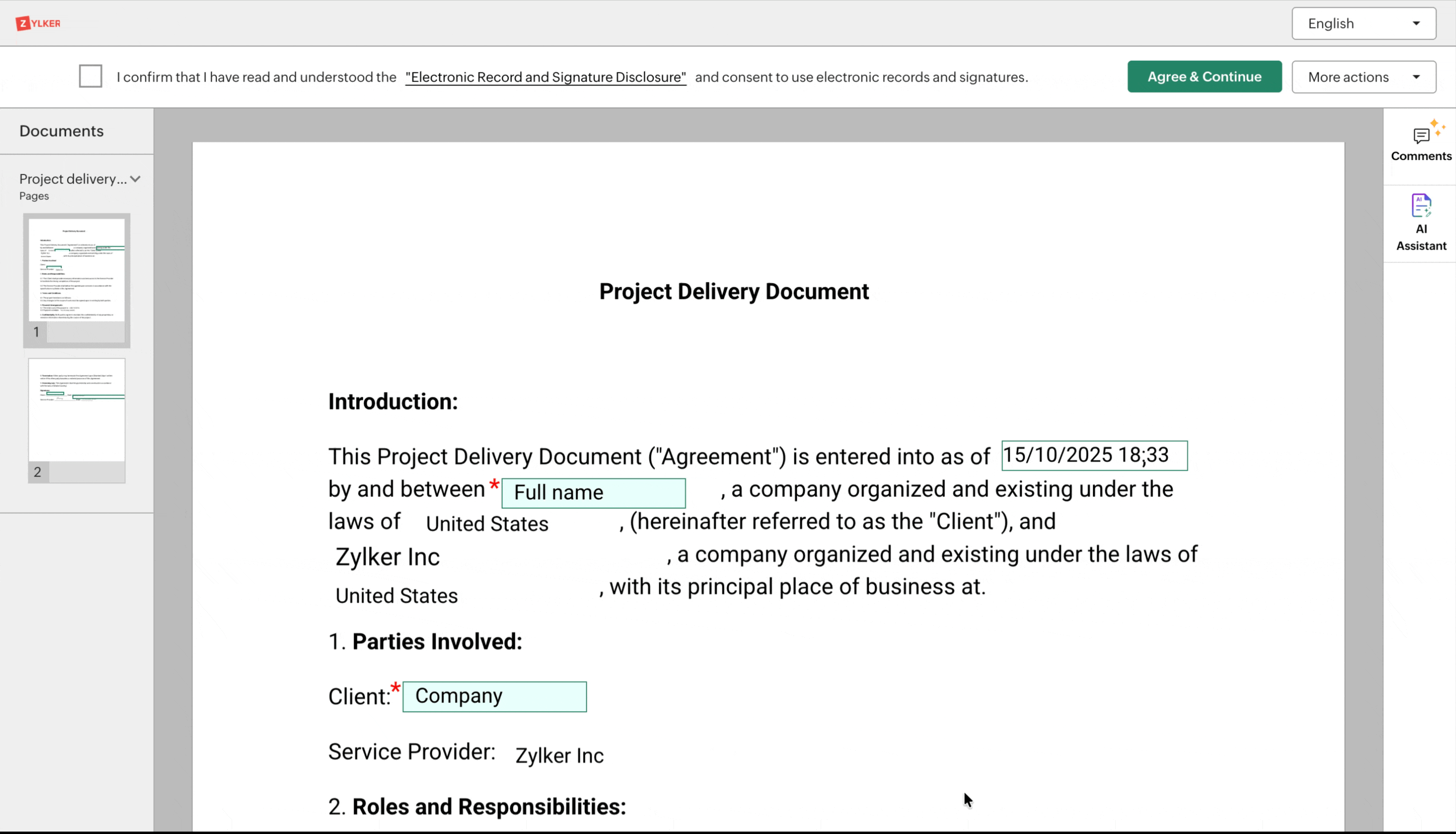 Disclaimer: The information provided by the AI assistant is for general informational purposes only and shall not be construed as legal, regulatory, or any other form of professional advice. Zoho Sign disclaims any liability for any error in the information provided herein. We recommend that you consult your legal counsel for any questions that you may have in this regard.