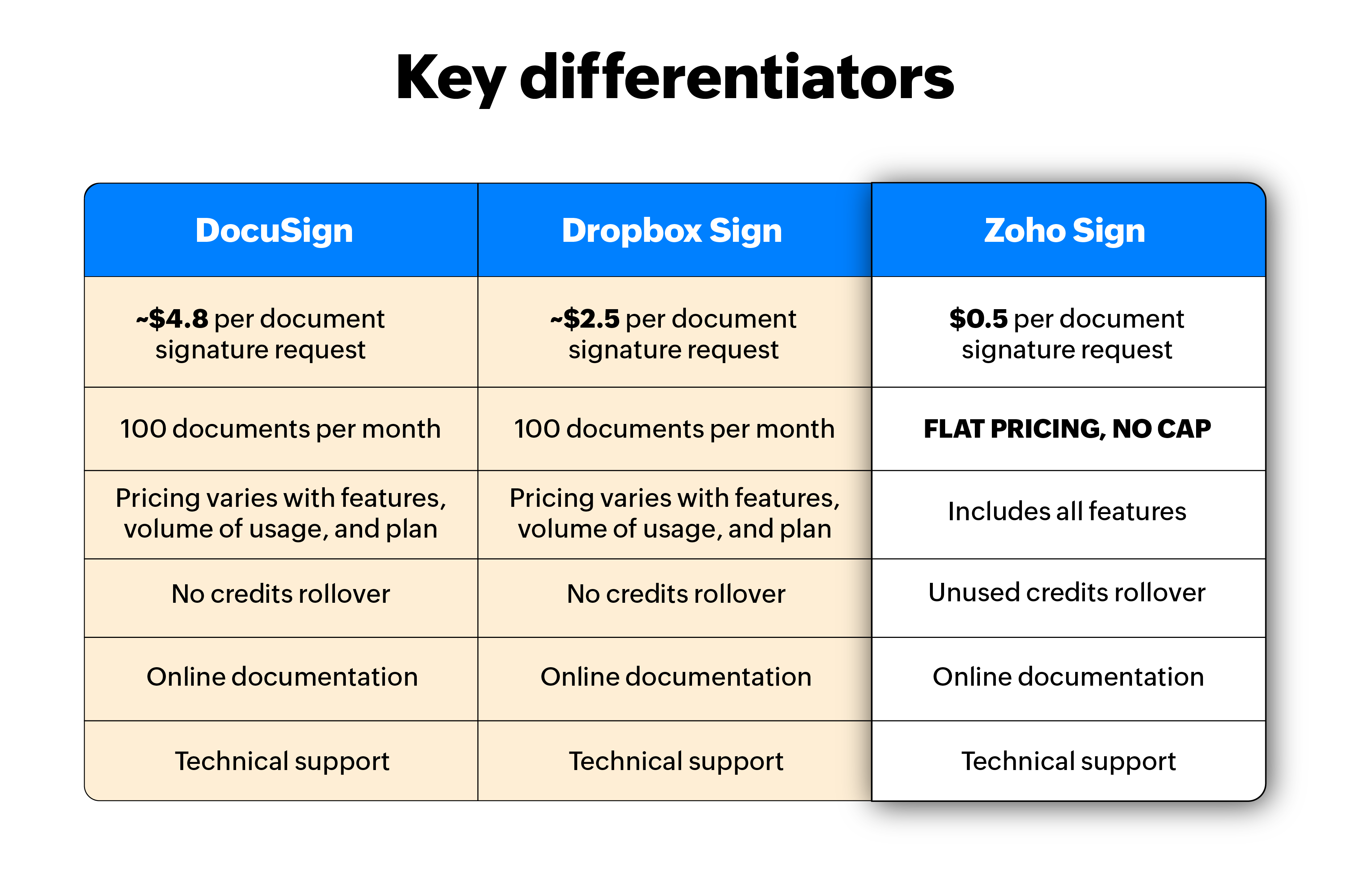 Easy document storage - Zoho Sign offers truly unlimited document storage. But if you prefer, you can easily keep a backup of all your documents in one of many integrated cloud service providers.