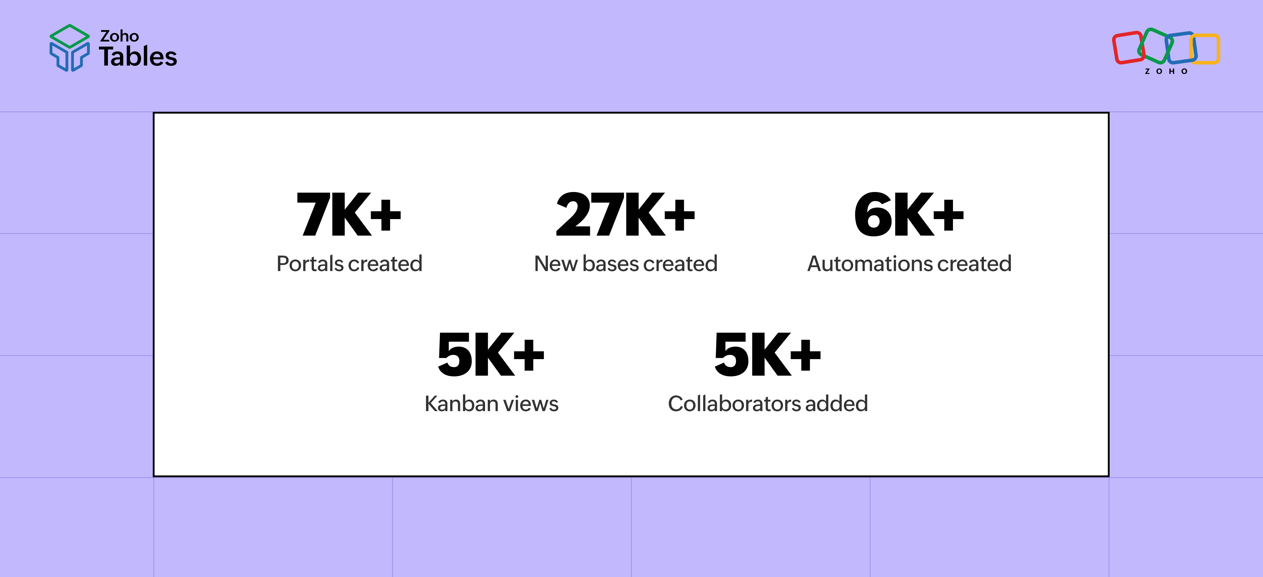 One year ago, we introduced Zoho Tables as our simple-yet-powerful work management software to help you organize work data, track tasks, and automate workflows with ease. As we mark our first anniversary, we’re excited to reflect on how far we've come and share a sneak peek into what’s coming next.