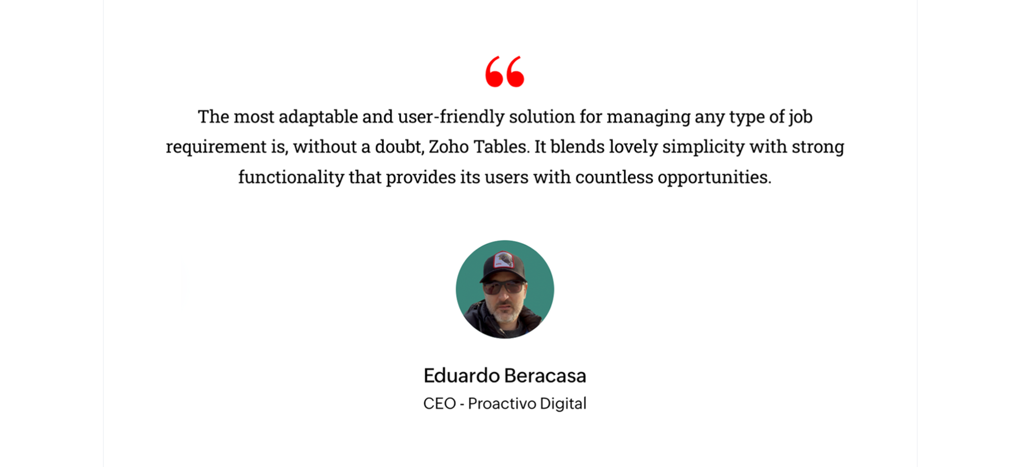 From day one, the response to Zoho Tables has been filled with excitement, curiosity, and those transformative “aha!” moments. Whether you’ve embraced it as a centralized work management hub or a refreshing alternative to traditional tools, Zoho Tables has consistently been celebrated for its: