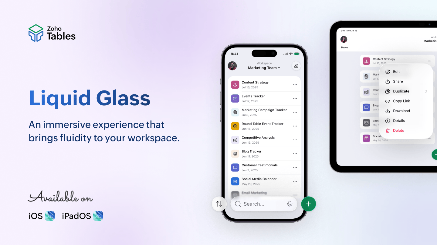 With iOS 26, Zoho Tables transforms every tap, swipe, and sketch into progress. It’s more than just a productivity app; it’s where creativity, intelligence, and automation meet to move your work forward.