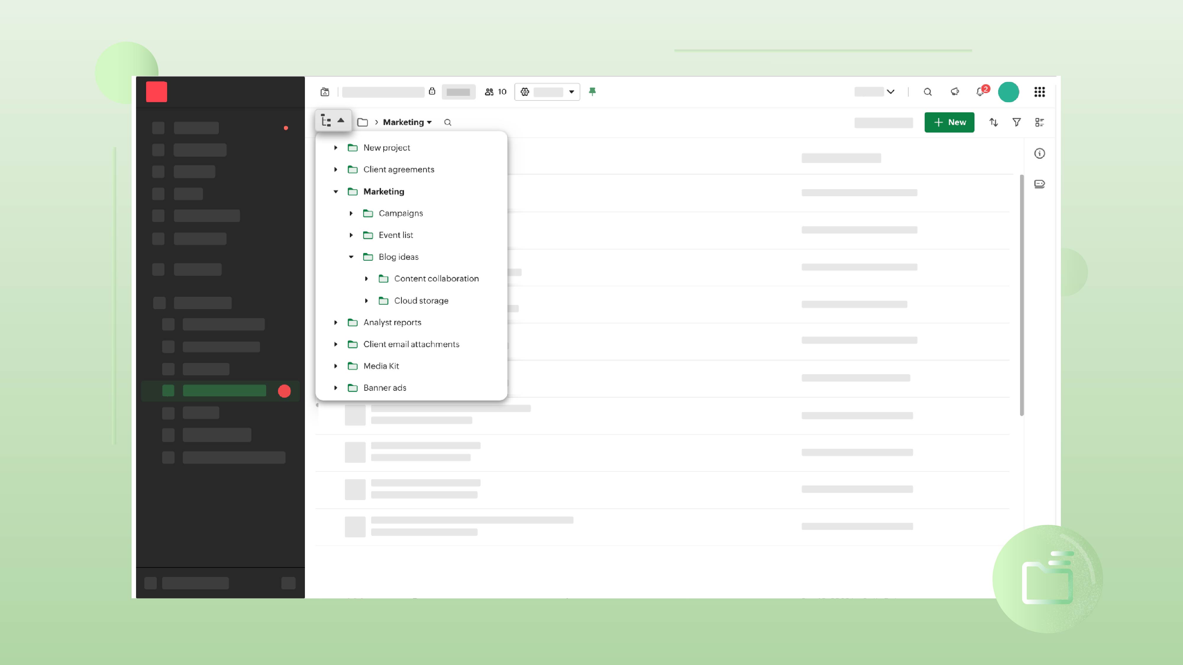 Pagination makes it easy to view and access all of your folders and subfolders within the tree navigation UI, ensuring you have total visibility and making it easy to find, access, and organize your work.