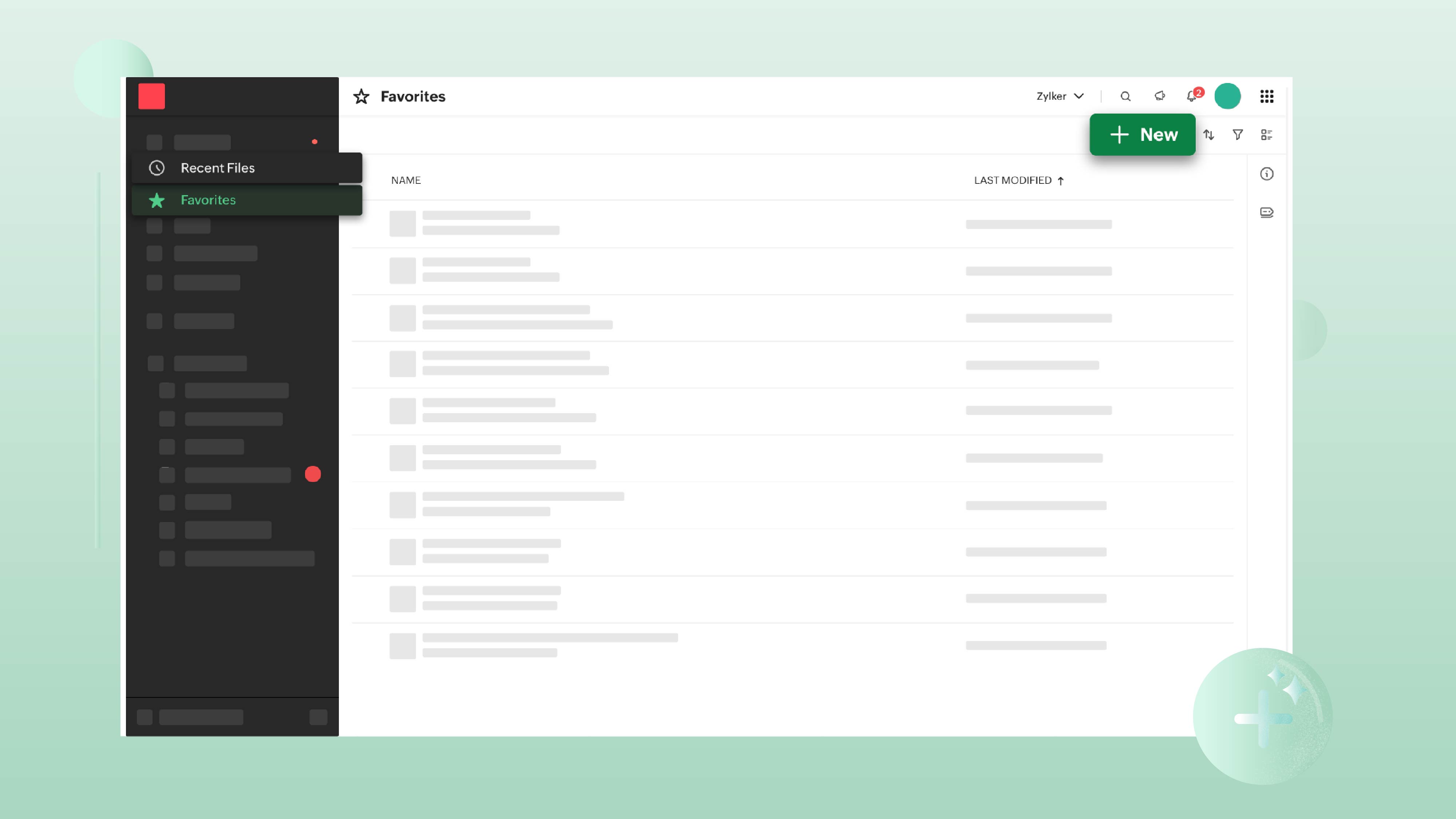 We've added the [+ NEW] button in the Recent Files and Favorites tabs, allowing you to effortlessly create, upload, or import files directly from these tabs.