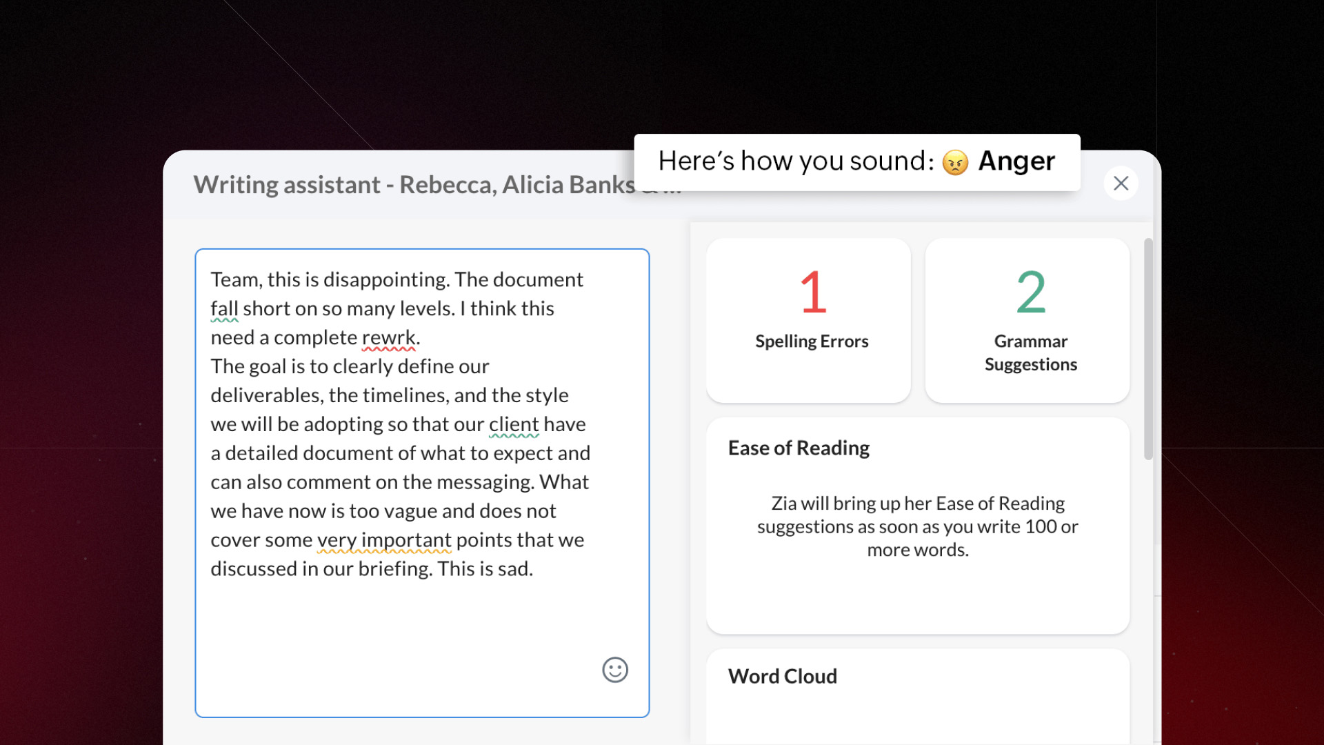 Eliminate the pesky grammar glitches and typos and adjust your phrasing in seconds so your feedback feels constructive, your requests feel reasonable, and your “urgent” emails don’t cause a panic.