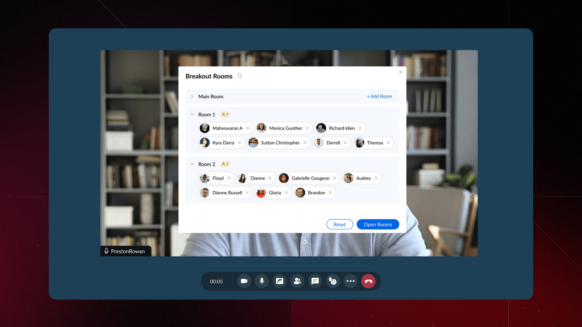 With Zoho Meeting’s Breakout rooms, you can split your main meeting into smaller groups so the designers can talk pixels while the developers talk code. It’s the same big meeting, just with way more productivity per square inch. Once the small groups have solved the world’s problems, you can bring everyone back into the main room to share the results.