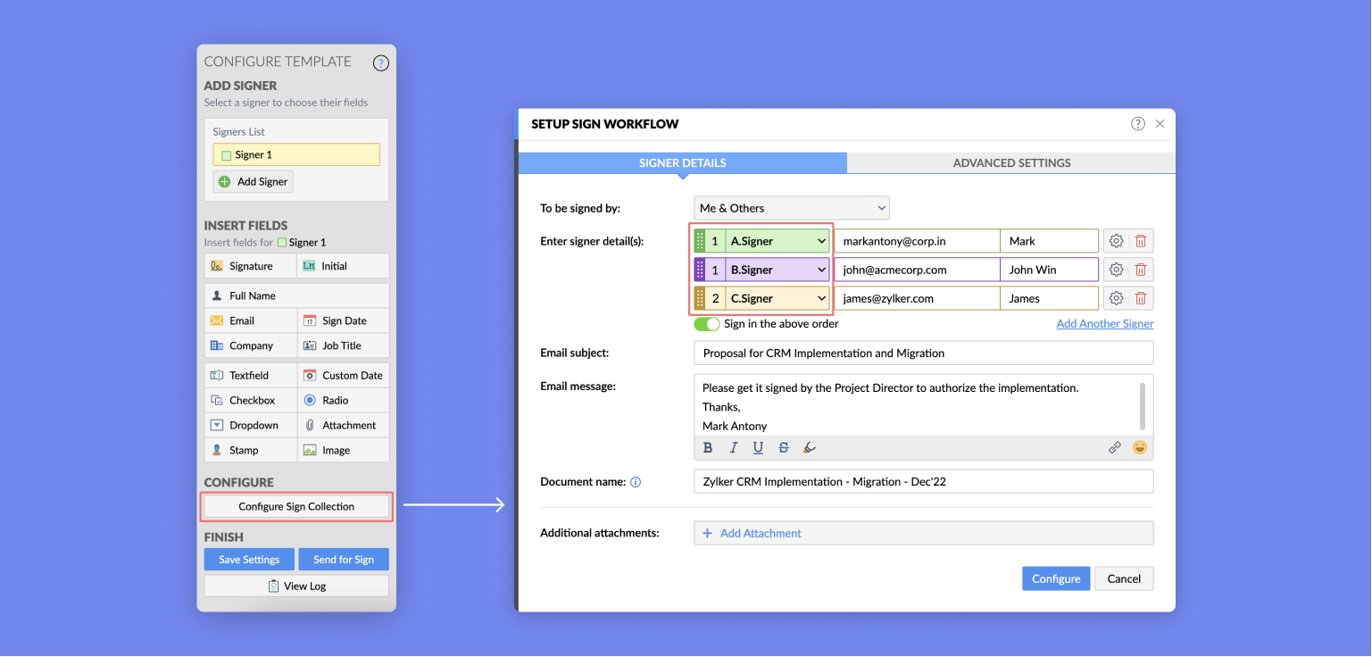 Streamline signature collection with a custom signing and notification order when engaging multiple signers.