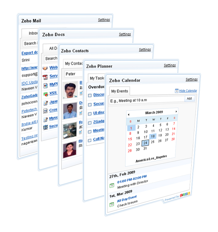 All the gadgets are OpenSocial compatible – this means you can now use these gadgets in any OpenSocial compatible social network. We plan to provide gadgets for other Zoho Applications moving forward.