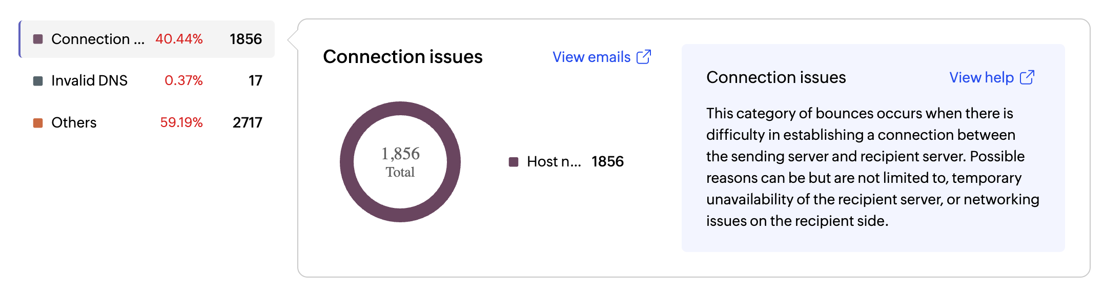 See the number of bounces each issue has triggered and their percentage of the total bounce count for the selected period.