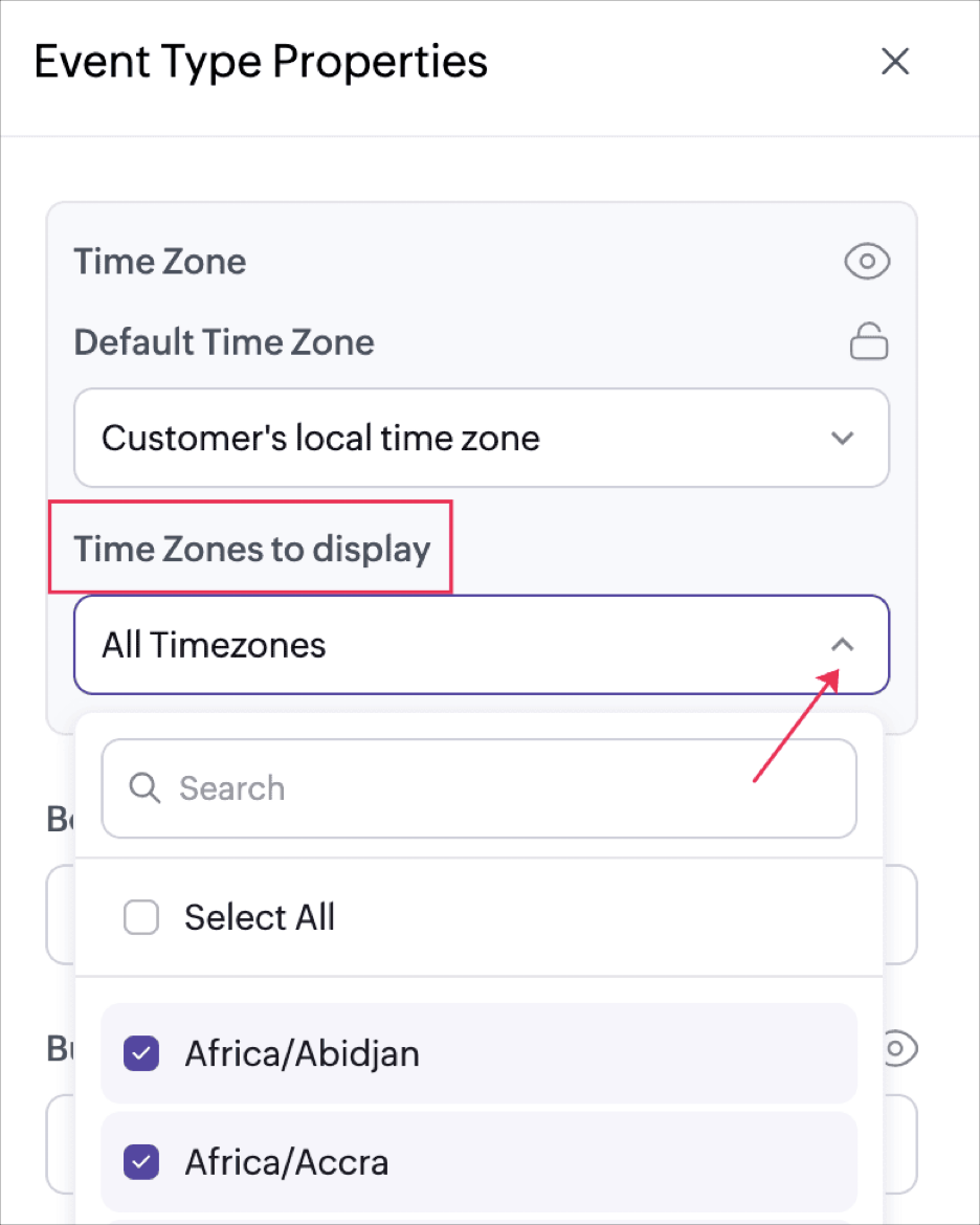EnhancementsWe’ve added a new "Time Zones to display" setting that lets you control which time zones appear on your booking page. With this, you can select a list of time zones, and only those time zones will be shown to the customers while booking.