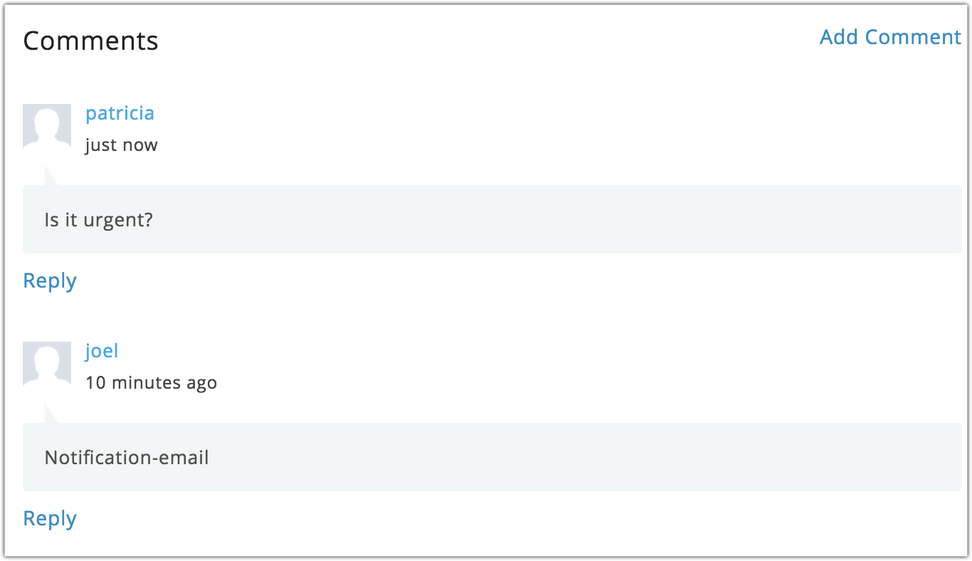 - Click the Add comment link below the status of the request to post comments.