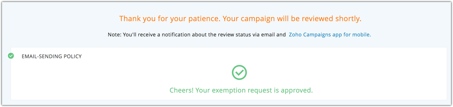 Check your exemption request status under Email-Sending Policy.