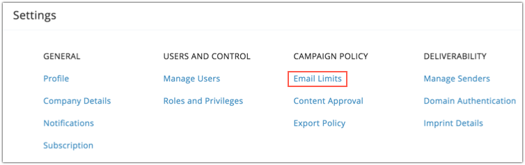 - Click Email Limits under Campaign Policy.