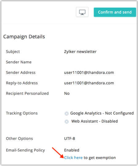 - Toggle the switch to apply exemption for this campaign and proceed in sending the campaign to all contacts in the selected mailing list.