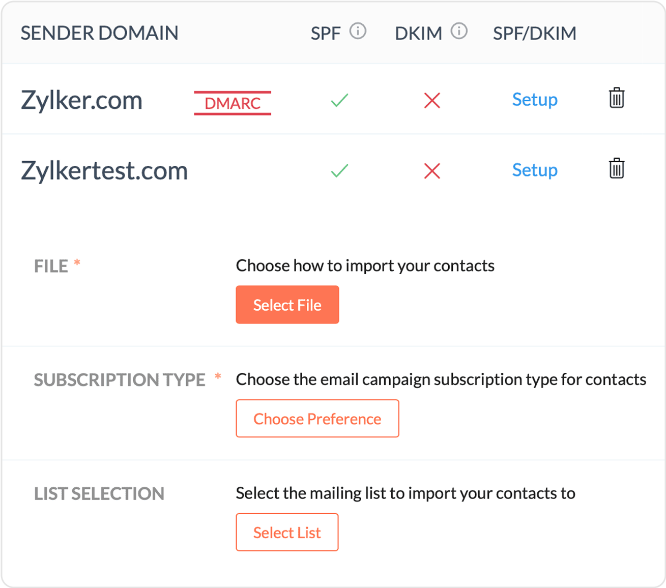 Zoho Campaigns has a strong deliverability engine. With domain authentication, a dedicated IP option, contextual sending recommendations, and a robust anti-spam engine, you know your emails will reach your customers' inboxes.
