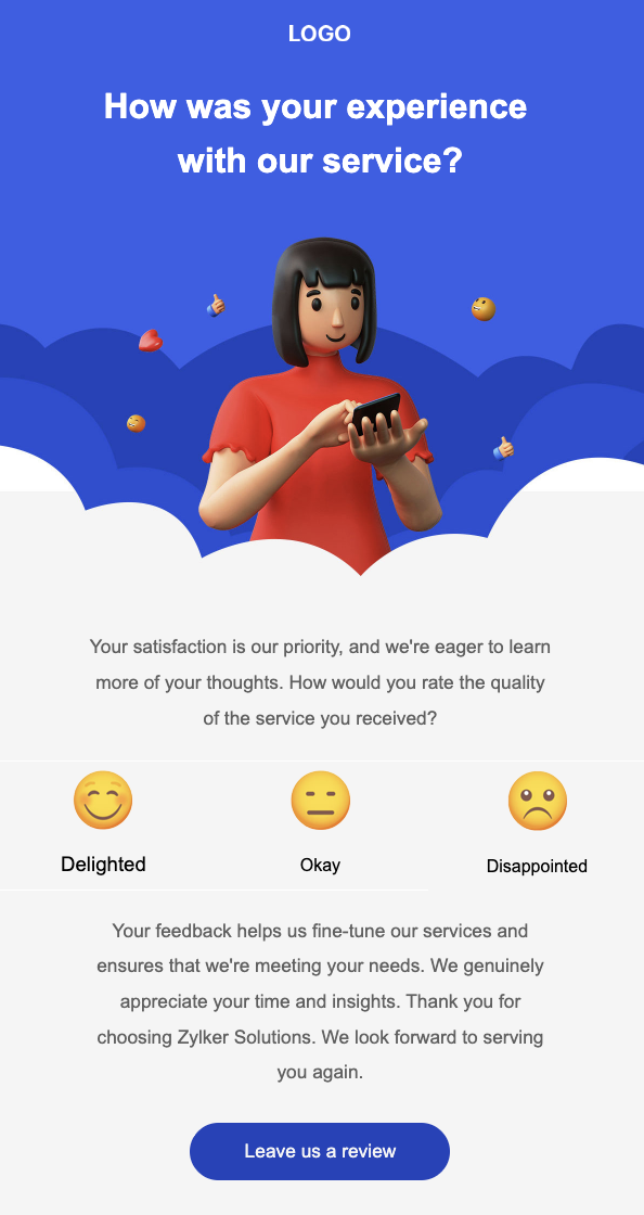 Feedback and review request mail: Ask your customers to share their feedback on their purchase and submit a genuine review on your website, Google, or other review sites. This way you can engage your customers and leverage user-generated feedback to acquire more customers.