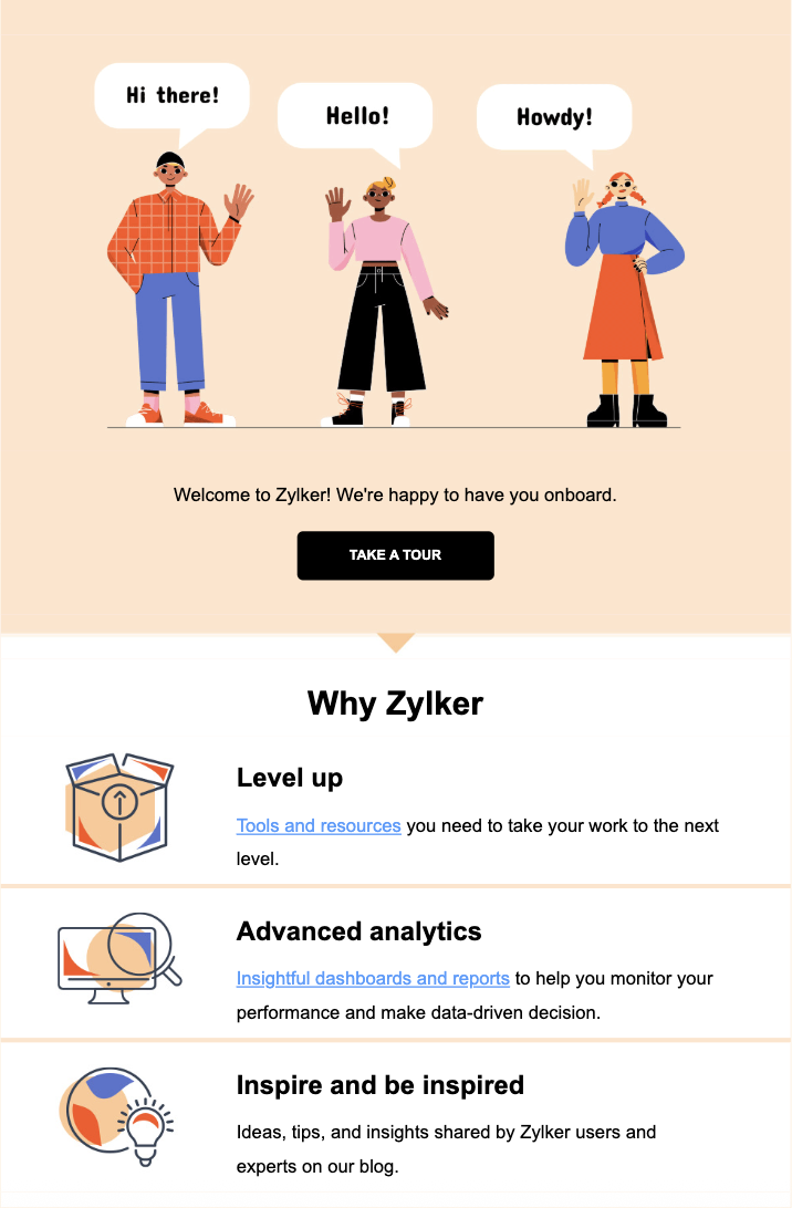 Plan your emails in advance. Leverage the email templates available in email marketing products like Zoho Campaigns, create your post-purchase workflows, and set up automation for every new customer that’s added to your contacts.