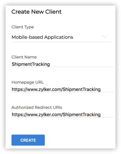 You can refer to Zoho's OAuth documentation for more details.Note: You can choose the Self Client type to test the client-server handling for your application, or if your application does not have a domain. You need not provide any details for this type. You can only create one Self Client client for your user account.