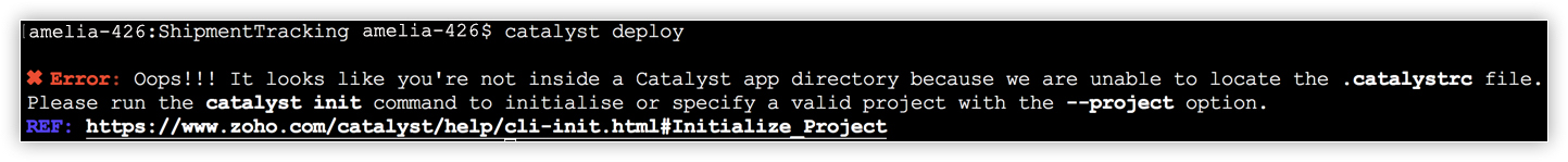 | General | Not in Catalyst App Directory during Command Execution | Run the command from a valid Catalyst directory or initialize a project to make this a Catalyst app directory |