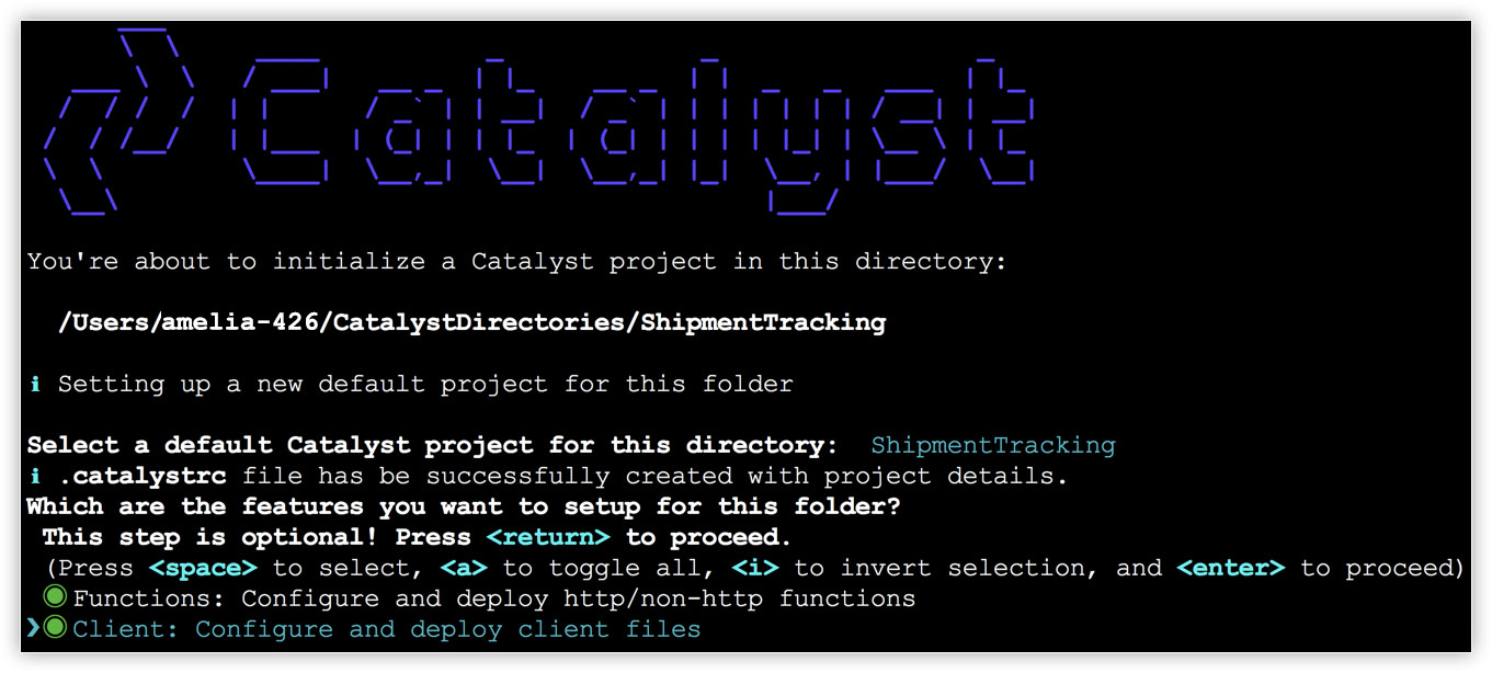 If you initialize the client directory for your project, Catalyst will initiate its setup process after the functions initialization.