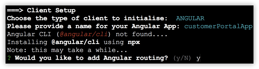 The CLI will then prompt you to provide a name for the client component of your project. Provide a name for the client and press Enter.