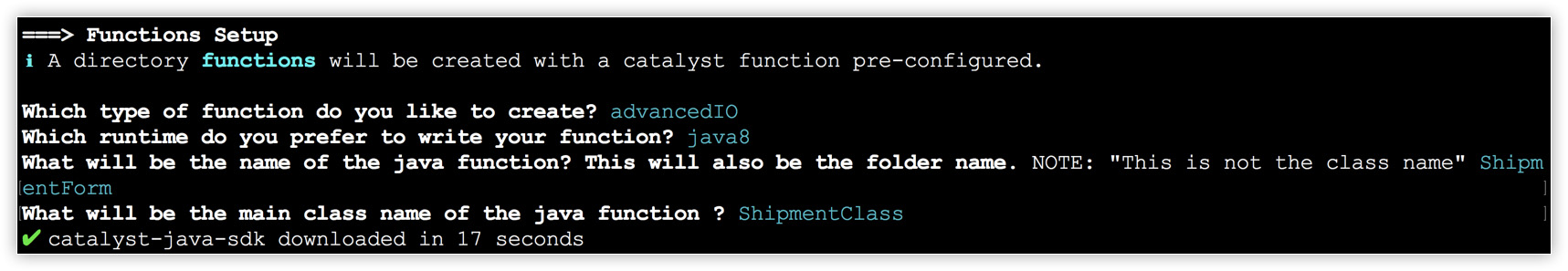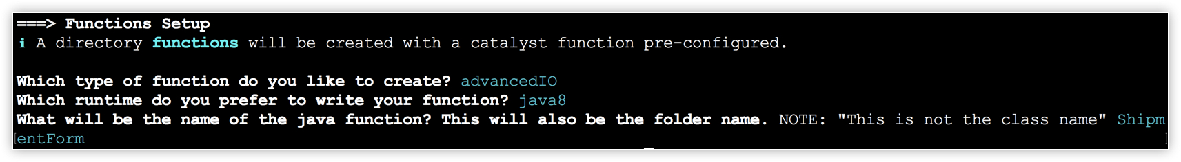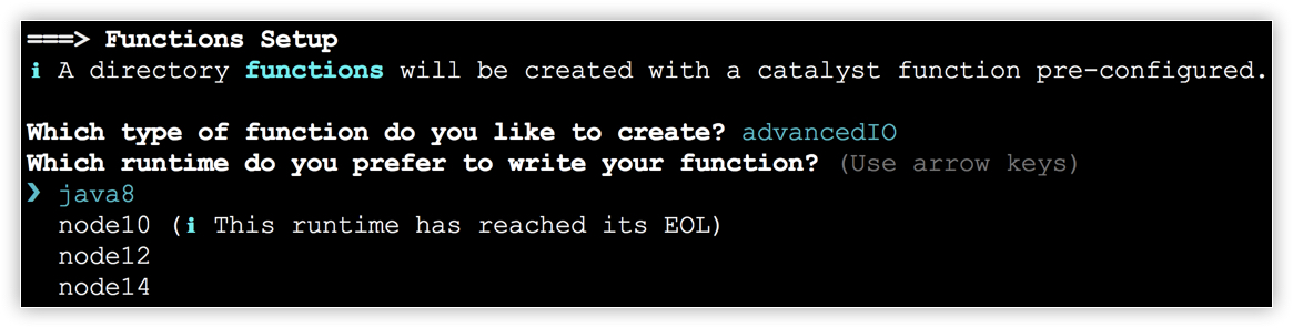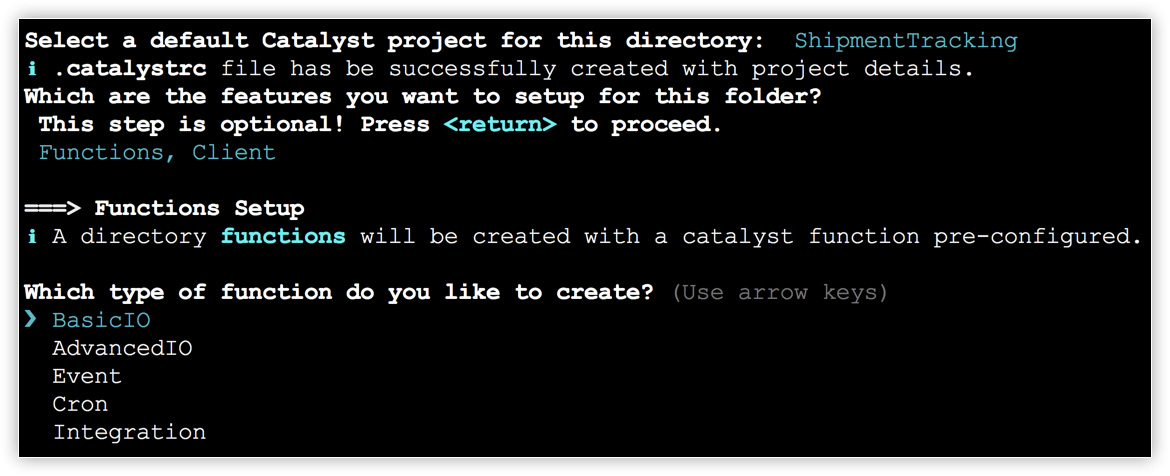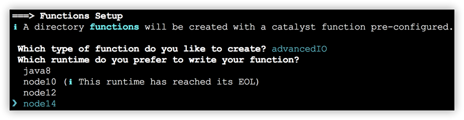 If you choose to initialize the Functions directory for your project, Catalyst will initiate its setup process.