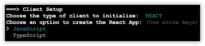 Select one of the client types to initialize for your project from the options, then press Enter.