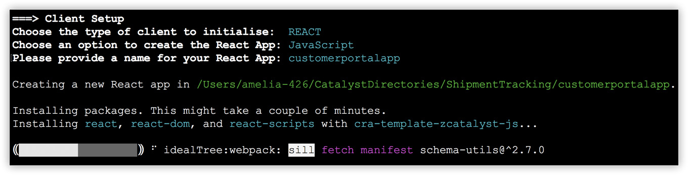 If you select React Web App from the options while initializing the client, Catalyst will initiate the standard setup procedure for React applications.