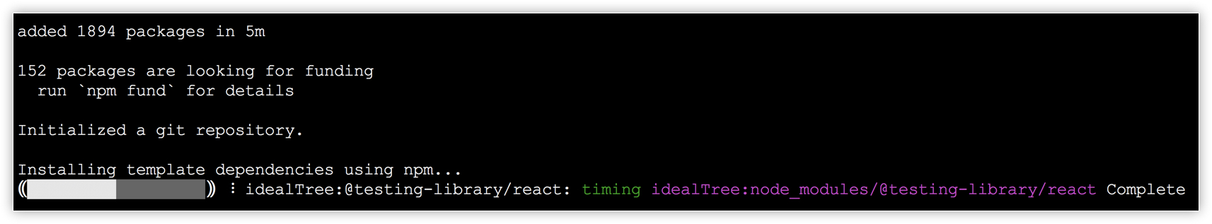 The package manager will then initialize a git repository for the React app, and install template dependencies.