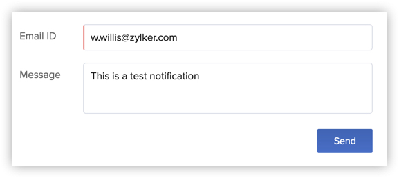 - Enter the email ID of the user account that you want to send test push notifications to and the message in the Web section.