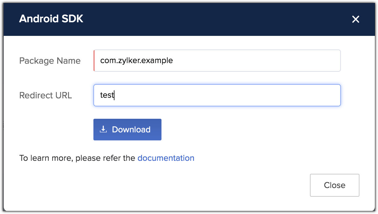 - Click the Android option from the above screen which opens an Android SDK pop-up window.