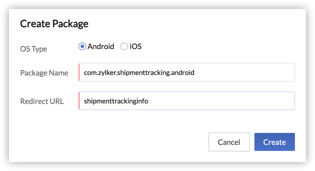 Ensure that Android is selected as the OS type. - Click Create to create the mobile SDK package.