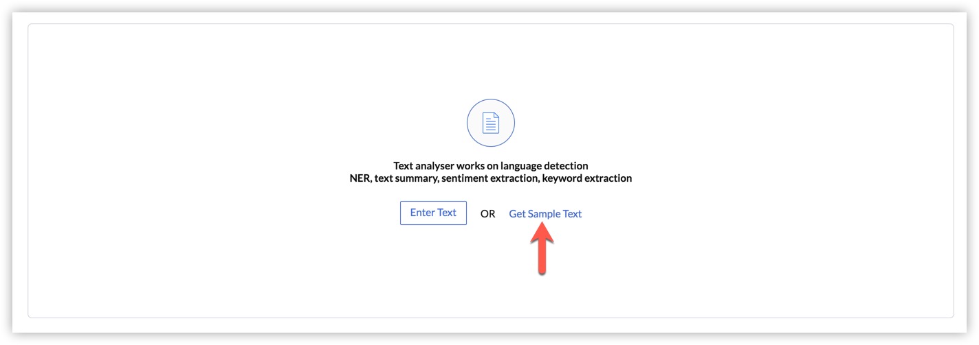 You can test Text Analytics by either selecting an existing sample text, or by providing your own text.