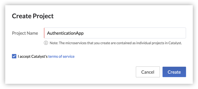 - Enter the project's name as 'AuthenticationApp' in the pop-up window.