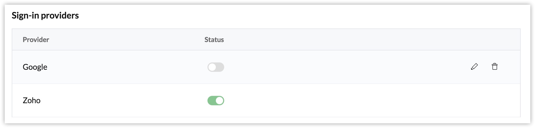 Perform the following actions to enable Zoho and Google sign-in providers in the Authentication app: