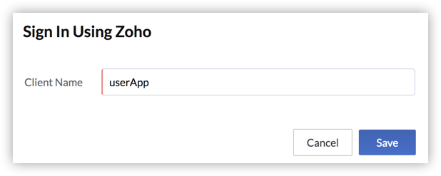 To enable Zoho sign-in, you must provide a client name for your application's OAuth client ID. Since the application will be hosted in Catalyst, you need not setup OAuth with Zoho.