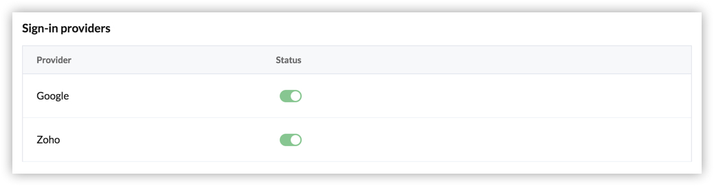 Next, let's configure Google and Zoho sign-in providers for the application.