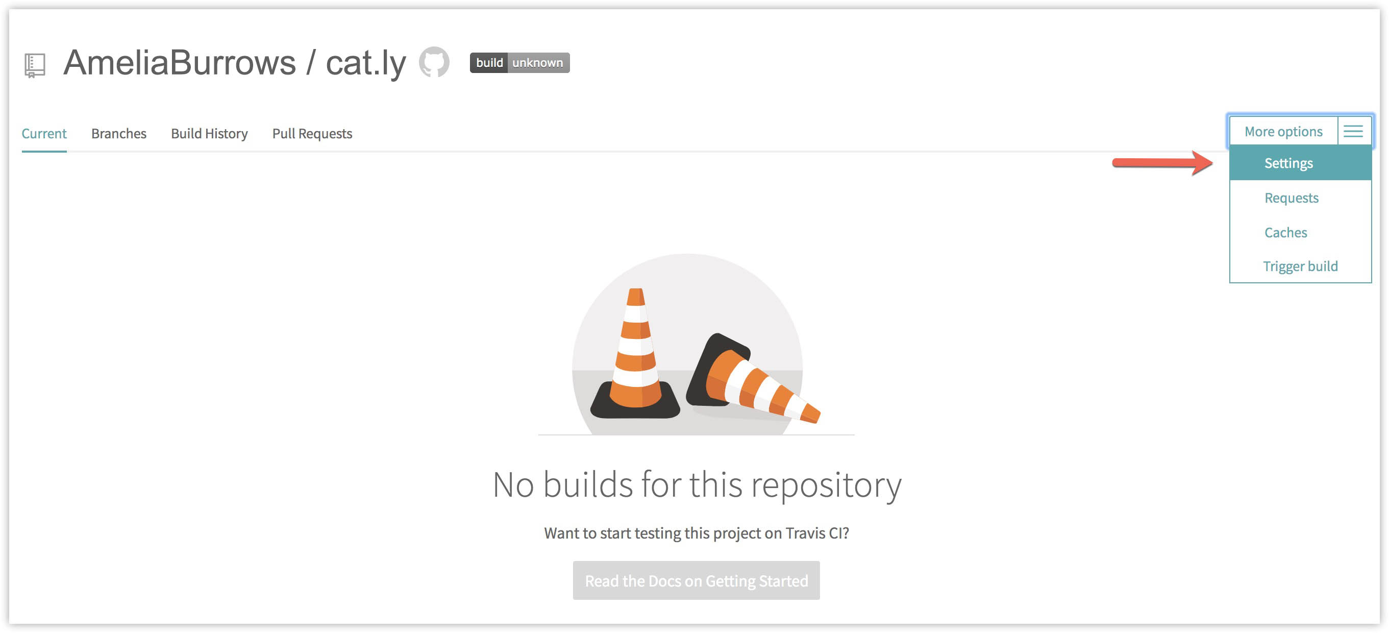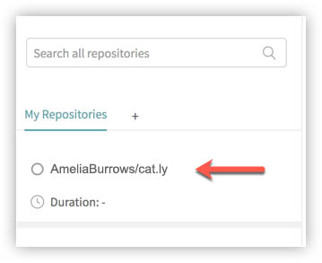 - Open the Travis CI console and click Cat.ly's repository under My Repositories.
