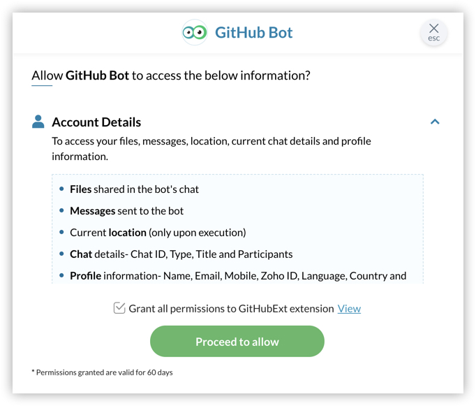 - Provide permission for the bot to access your account details.