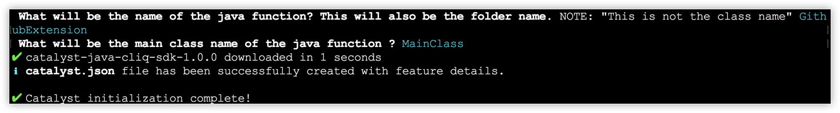 The CLI will download and install the latest Catalyst Java SDK package.