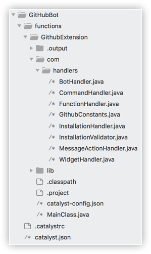 Note: Ensure that you enter the class name and folder name exactly as instructed, because the application's code contains the same names.The functions directory is now created in the standard structure. Catalyst initialization is complete.