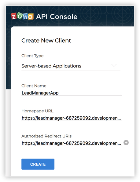 - Enter "LeadManagerApp" as the client name.