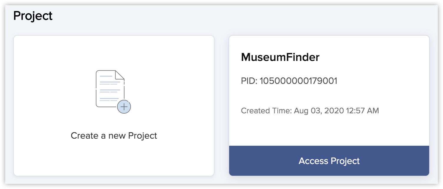 Your project will be created. You can open it by clicking Access Project.