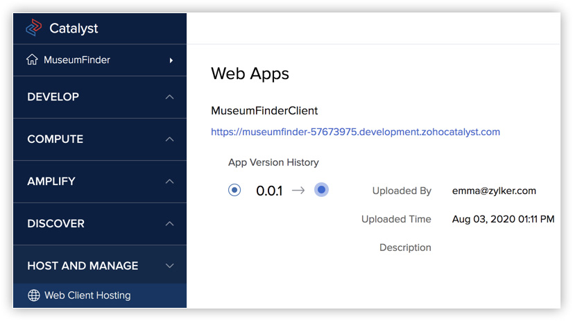 Similarly, click Web Client Hosting under Host and Manage to check if the web client has been deployed and hosted.