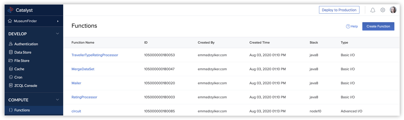 Click Functions under Compute to check if all five functions were deployed properly.
