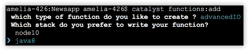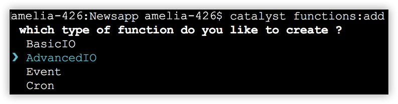 $ catalyst functions:add - Select AdvancedIO as the function type and press Enter.