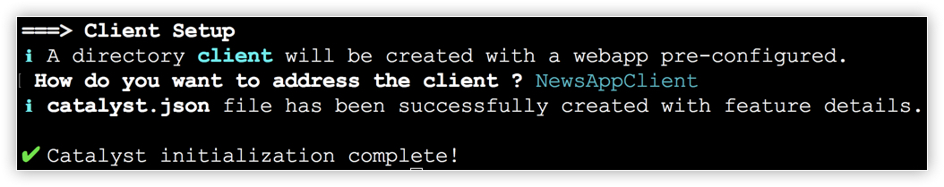 The client directory will be created in the standard structure. Catalyst initialization is now complete.